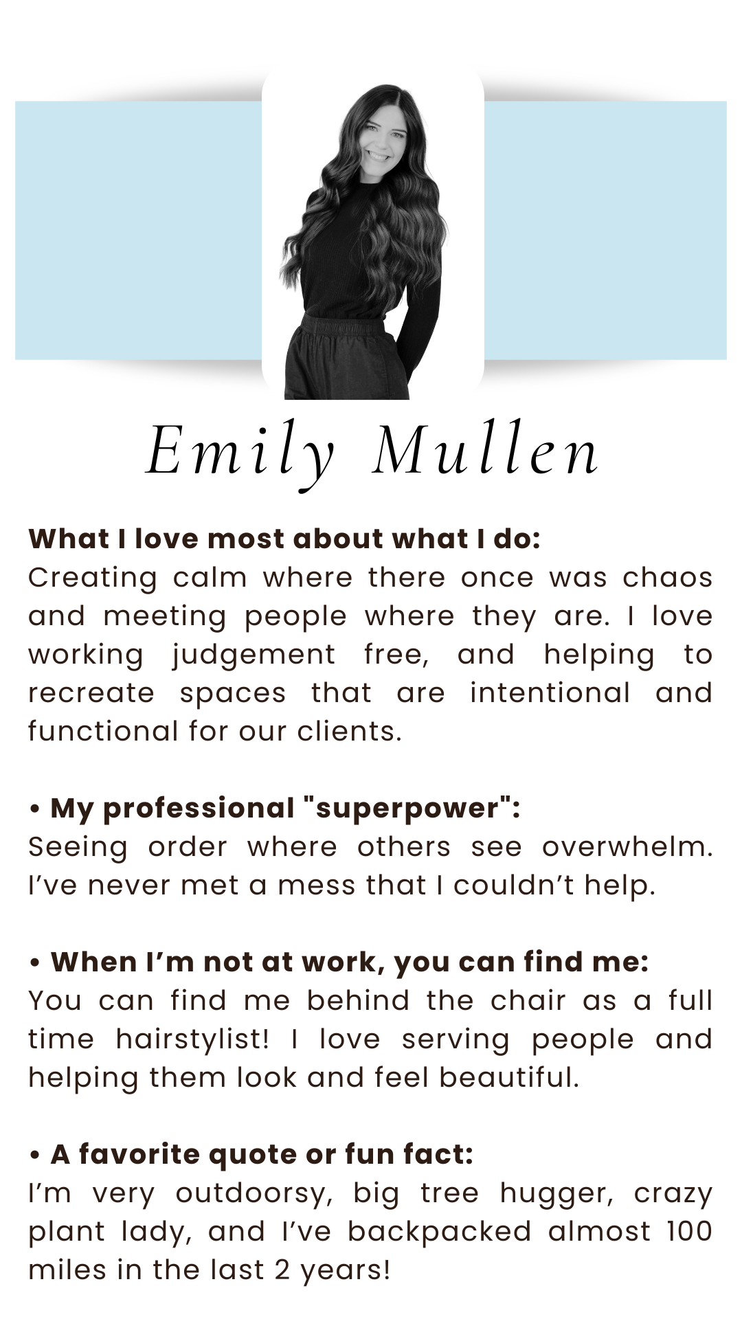Now, my goals lie in helping others get their time back and enhance their spaces. I excel at finding smart solutions for even the most chaotic spaces.